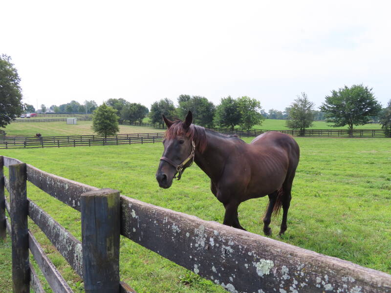 Visitors are led on a tour to see well-known horses like Birdstone, a Belmont Stakes winner who upset Smarty Jones’s Triple Crown bid in 2004 and was both the son and father of Kentucky Derby winners; paddock mates Game On Dude and Little Mike, who between them earned about $11 million; Patch, a one-eyed horse (interestingly given the name before he lost his eye to an infection) who in 2017 ran in the Kentucky Derby and finished third in the Belmont; and Alphabet Soup, a white-coated beauty who upset Cigar with a photo-finish victory in the 1996 Breeders’ Cup Classic and in retirement is pals with a donkey named Gorgeous George.
