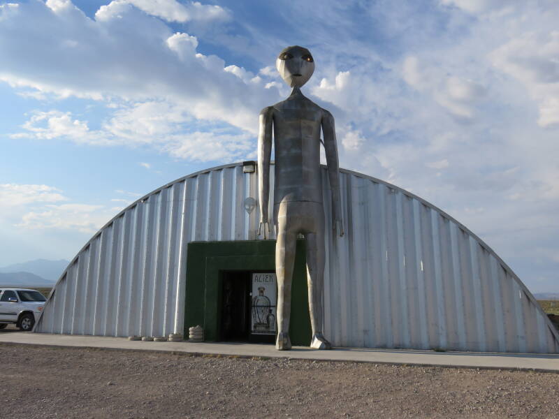 Next up is the Alien Research Center, a large metal barn-like building with a giant alien outside. It is more of a gift shop than a research center, but the proprietor, an older man with a very red, slightly puffy face, is an alien enthusiast.