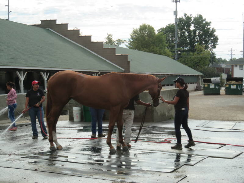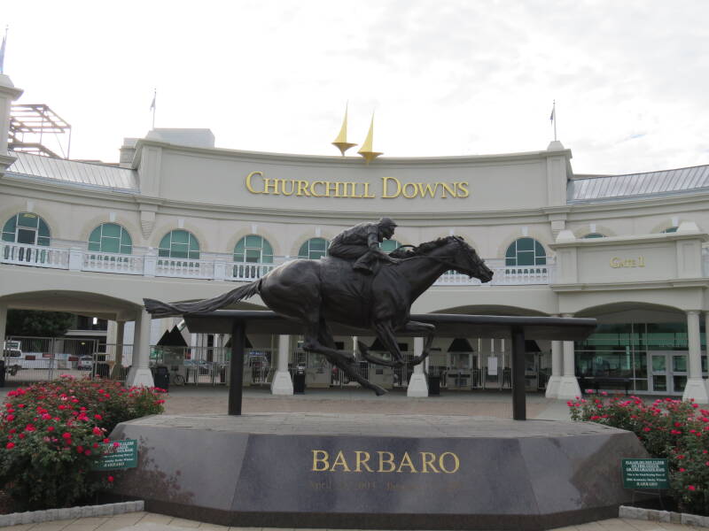 Churchill Downs contains 47 racing stables and has a holding cell for drunks. From March through November, 700 workers live full-time in about 250 dorms. There’s 1,400 total stalls, in which horses spend up to 22 hours a day. It has a chapel, too, though services are held on Monday since Sunday is a race day. One building is marked “Press Center,” but that is only the case one day a year. The other 364 days, it is simply a rec hall.