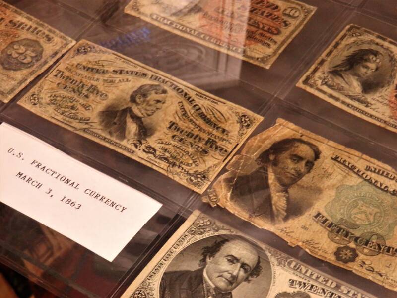 During the Civil War, coins used to be melted down to provide material for the war effort. In their place, paper, or “fractional” currency was issued (for example, there would be a paper bearing 50 cents for a 50-cent coin).