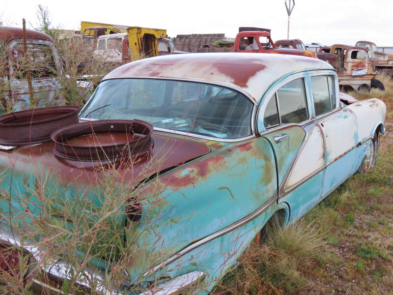 A bunch, indeed. Situated in Moriarty, New Mexico, a hamlet astride Route 66 consisting of just under 2,000 people, the Lewis Antique Auto & Toy Museum features classic automobiles – some in pristine condition in a garage, others rusting away outdoors, and still others somewhere between these extremes.