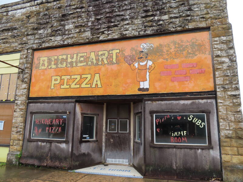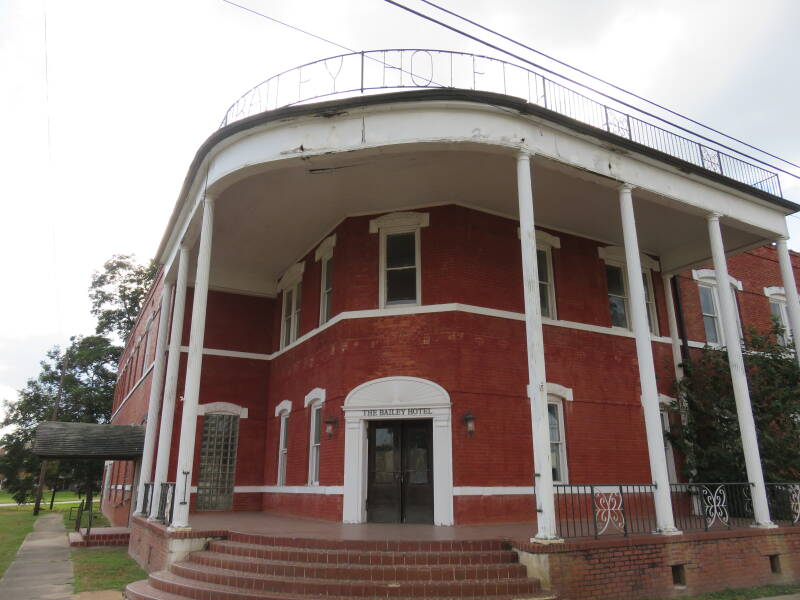 This town with an unusual name has seen a population decline of nearly 20% from 2010 to 2020. Its origins date to the railroads. The Bailey Hotel, pictured at the top, was built in the early 20th century and operated through the 1960s, closed, and reopened in 2001 before closing again.