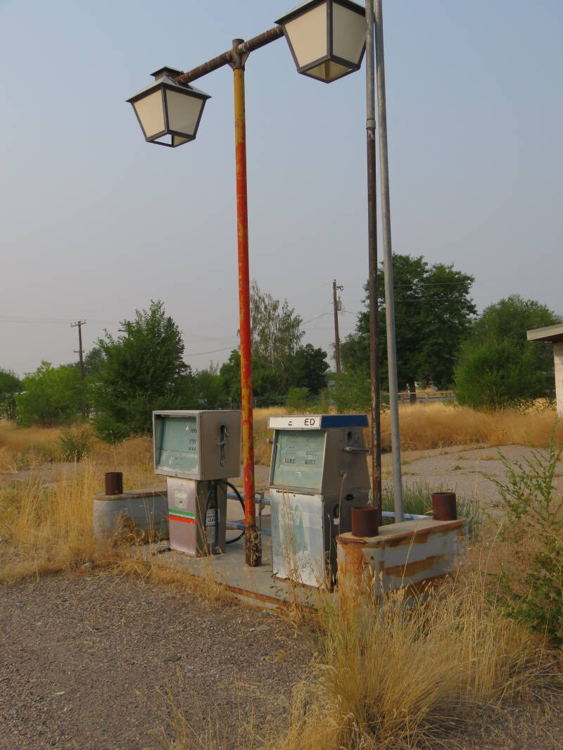 Weston was founded in 1865 and had a population of over 1,000 at one time. The census hasn’t recorded a figure below 230 or above 452 since 1910. Downtown includes several old buildings that have been or are in the process of being restored by a local resident. With clear cut angles and the absence of traditional roofs, they stood out starkly against the uniform blue sky and appear as if they came from a movie studio lot.