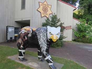Bartlesville, Oklahoma, features the “Mary Martha Buffaloes,” first created in 1998 as part of a Girl Scout project to benefit a local charity organization. Similar to the boots, the buffaloes are hand-painted by local artists and speak to the city’s and state’s history. Local businesses and organizations sponsored the various buffaloes and/or a calf-version of them, with the funds channeled to Mary Martha Outreach, which provides clothing and other goods and services to those in need.
